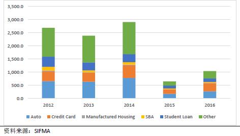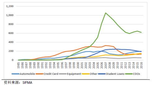 图5:1985-2016年ABS发行规模(10亿美元)
