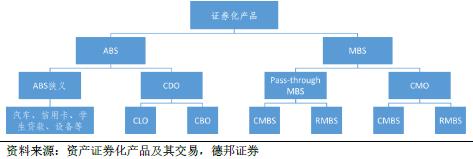 根据基础资产的不同,美国结构化证券在广义上主要可分为资产支持证券(ABS)及抵押贷款支持证券(MBS)两类。
