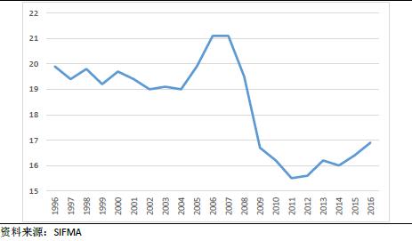 图2:1996-2016美国市政债券平均到期期限