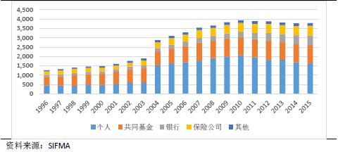 图3:各类投资者持有美国市政债券金额[1](10亿美元)