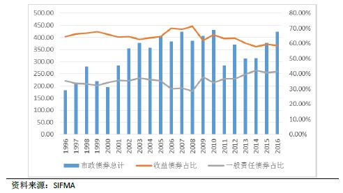 图1:1996-2016美国市政债券发行 情况(单位:10亿美元)