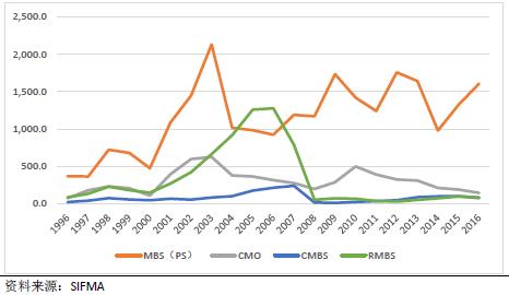 图6:1996-2016年MBS发行规模 (单位:10亿美元)
