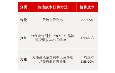 表1 保险公司负债端成本