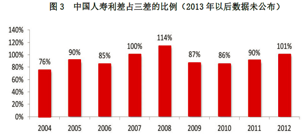 图3 中国人寿利差占三差的比例(2013年以后数据未公布)