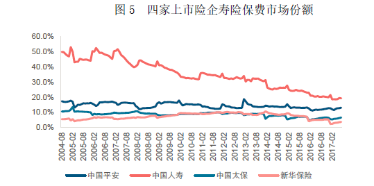 图5 四家上市险企寿险保费市场份额