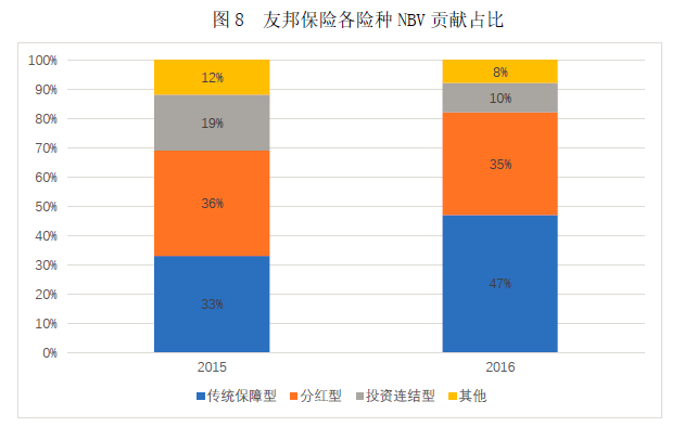 图8 友邦保险各险种NBV贡献占比