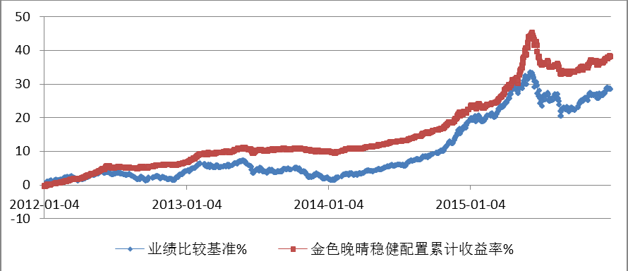 梁福涛担任投资经理、权益投资部总经理和投资管理部总经理期间,投资管理的企业年金组合、养老保障产品组合的投资业绩优秀,曾管理的金融、医药、航运等多个行的企业年金单一计划多个投资管理人组合排名第一。2012-2015年连续负责管理公司最大的含权益集合计划企业年金组合累计收益率超过38%,年均收益率超过9.5%,累计业绩位列同类组合前茅,波动率低于同类组合且每个年度均为正收益,大幅度战胜相对和绝对业绩基准(如下图)。