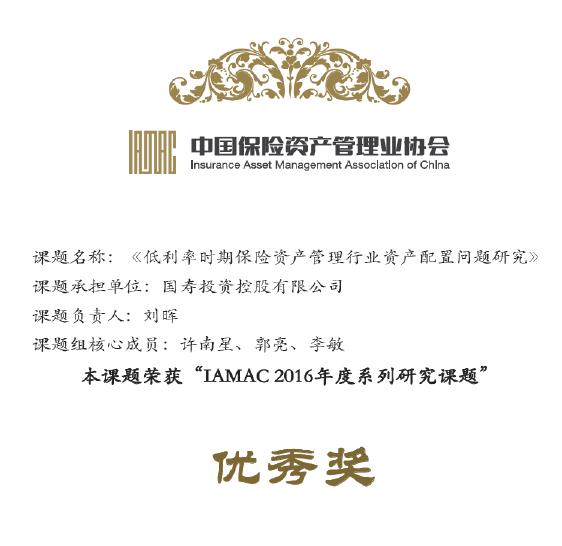 近日,由中国保险资产管理业协会举办的“2016IAMAC年度课题”活动圆满结束,并选出十大“优秀奖”课题。本年度课题共有42家业内外机构积极参与,累计完成36项、110多万字的研究成果,其中26项成果纳入协会IAMAC丛书——《2016IAMAC年度系列研究课题集》,由上海财经大学出版社公开出版发行。本栏目精选了部分获奖课题的获奖感悟陆续发布(按课题名称拼音排序)。
