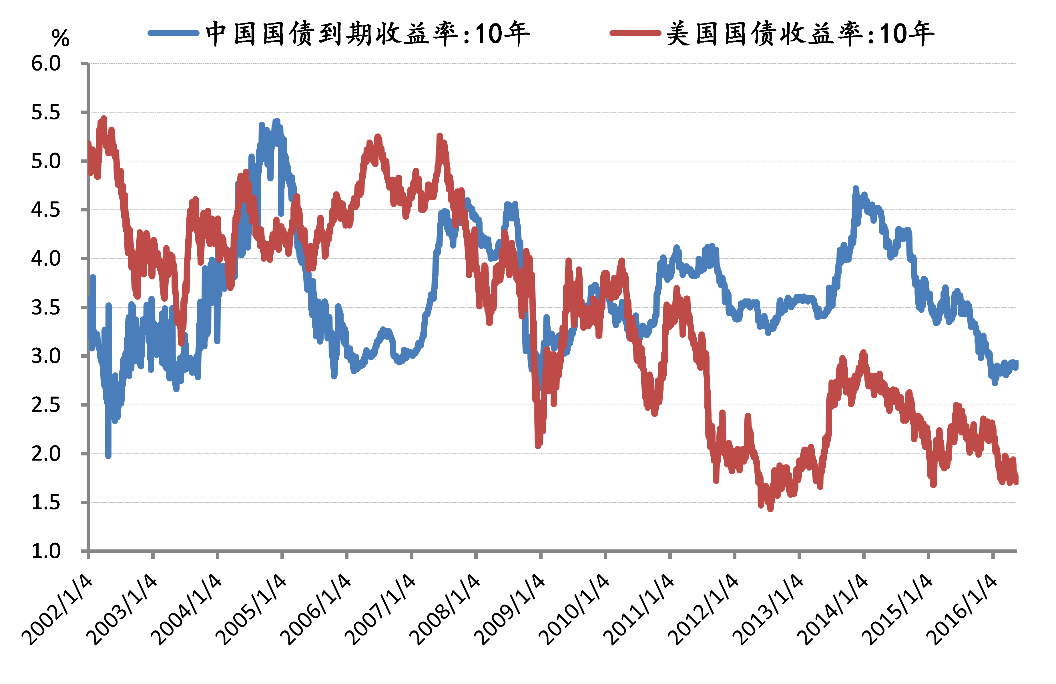 图1 中美10年期国债收益率(单位:%)