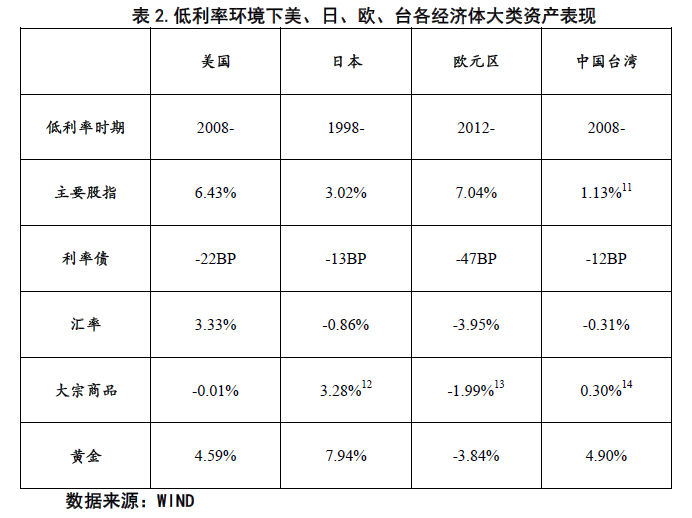 一、低利率环境与大类资产表现的历史经验梳理