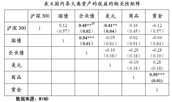 各类资产收益率的相关性如下表所示: