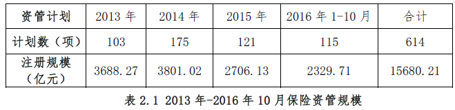2013年至2016年10月底,保险资产管理机构累计发起设立各类债权、股权和项目资产支持计划614项,合计备案(注册)规模15680.21亿元。其中10月,共有9家保险资产管理公司共注册各类资产管理产品11项,合计注册规模184.2亿元。具体规模情况如下: