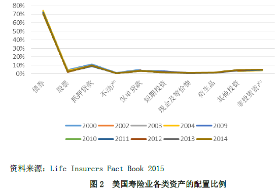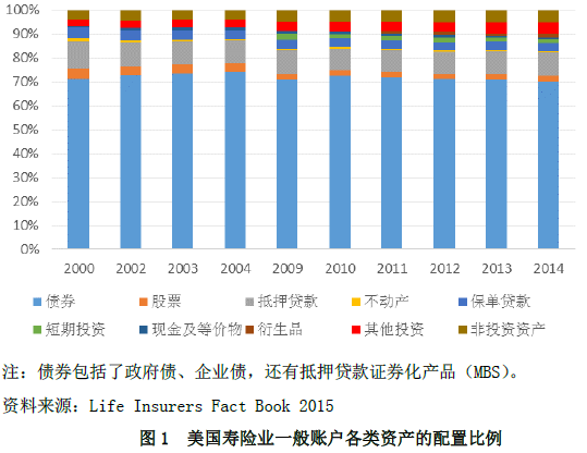 从美国寿险业大类资产的配置(见图1)可以看出,其投资具有鲜明特点。