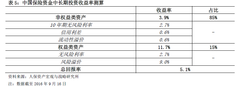 (二)未来3年中国保险资金可获得的投资收益率在5.1%左右
