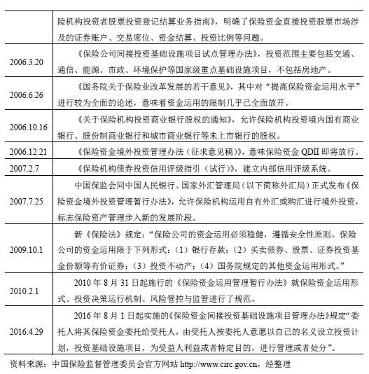 可以说,保险资金运用的发展伴随着相关法律法规的不断完善,两者相辅相成。随着经济社会的不断进步,我国保险公司传统意义上的“重保险业务、轻保险资金运用”的状况已明显改善,如今保险投资已成为资本运作的重要内容,亦成为学术研究的理论热点。如果以1995年《保险法》正式实施为起点,至今保险资金运用已历经二十余年的发展,可以分为如下几个阶段: